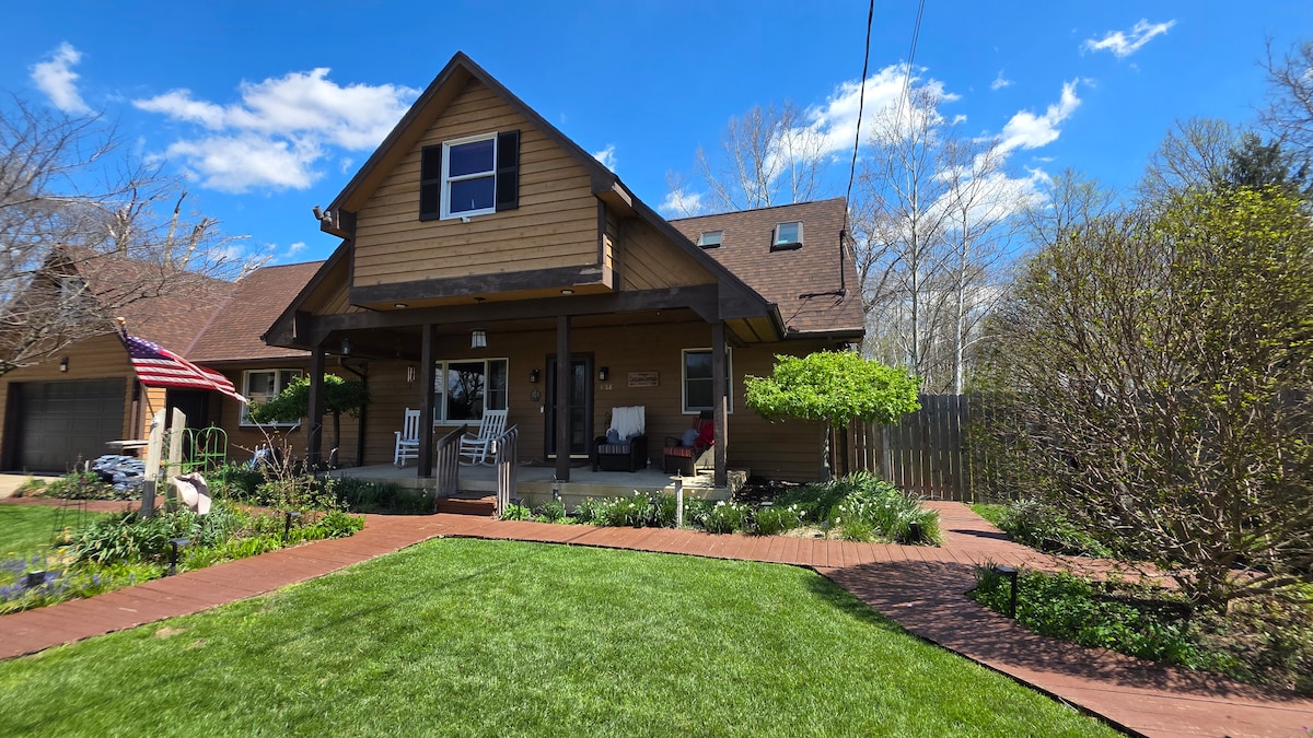 This charming suite in a stately Tudor home shares walls with the main house but locks securely to ensure privacy. Enjoy convenient off‑street parking and come and go as you please through private entrance off rear patio. Just steps away, a 7‑person hot tub awaits—positioned to give you privacy while you unwind. Downtown is 0.25 mile away, offering plenty of dining, shopping, and entertainment. Or fire up the grill and relax on the patio. Outdoor furniture, fire pit, and firewood available.