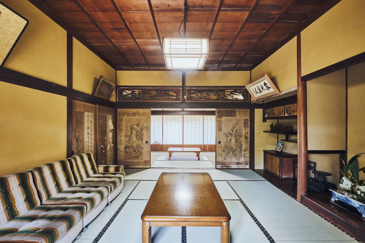 I hope that this 100-year-old house with a detached building, veranda, and 190 ㎡ tatami mat room, will be a place where you can feel the importance of the people who are close to you by spending a relaxing time in an atmosphere that feels like returning to your grandparents' house. It can accommodate up to 10 people, so you can enjoy your own private space, not just for families, but also for groups. The garden is also 190 ㎡. You can barbecue, and your children and dogs can run around and free their minds. You can bring your dog inside and let it sleep with you. Children and dogs will have more fun moving their bodies and freeing their minds than talking, so please let them run around indoors and outdoors. It is on a road with a view of the sea, about a 3-minute walk from the inn. We recommend going to see the morning sun while listening to the sound of the waves and the chirping of the birds. Toyosato City, where the inn is located, is a forest therapy base. Forget the hustle and bustle of everyday life and listen to your heart with both the inn and forest therapy. I want you to have that kind of time.