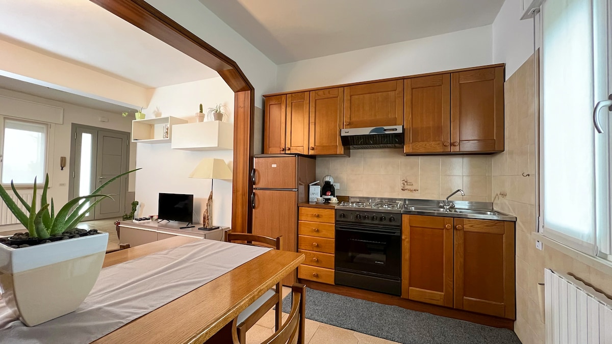 We are located just 10 minutes from Jesolo and near the seaside resorts of Caorle, Eraclea Mare, and Cavallino, with a wide availability of cycling routes in the Venetian lagoon. The train station, with daily connections to Venice, can be reached in a few kilometers by car. The McArthur Glen outlet is just 10 minutes away. The 75-square-meter apartment features an entrance with a spacious living room with a sofa bed and a fully equipped kitchen, one double bedroom, and a private bathroom.