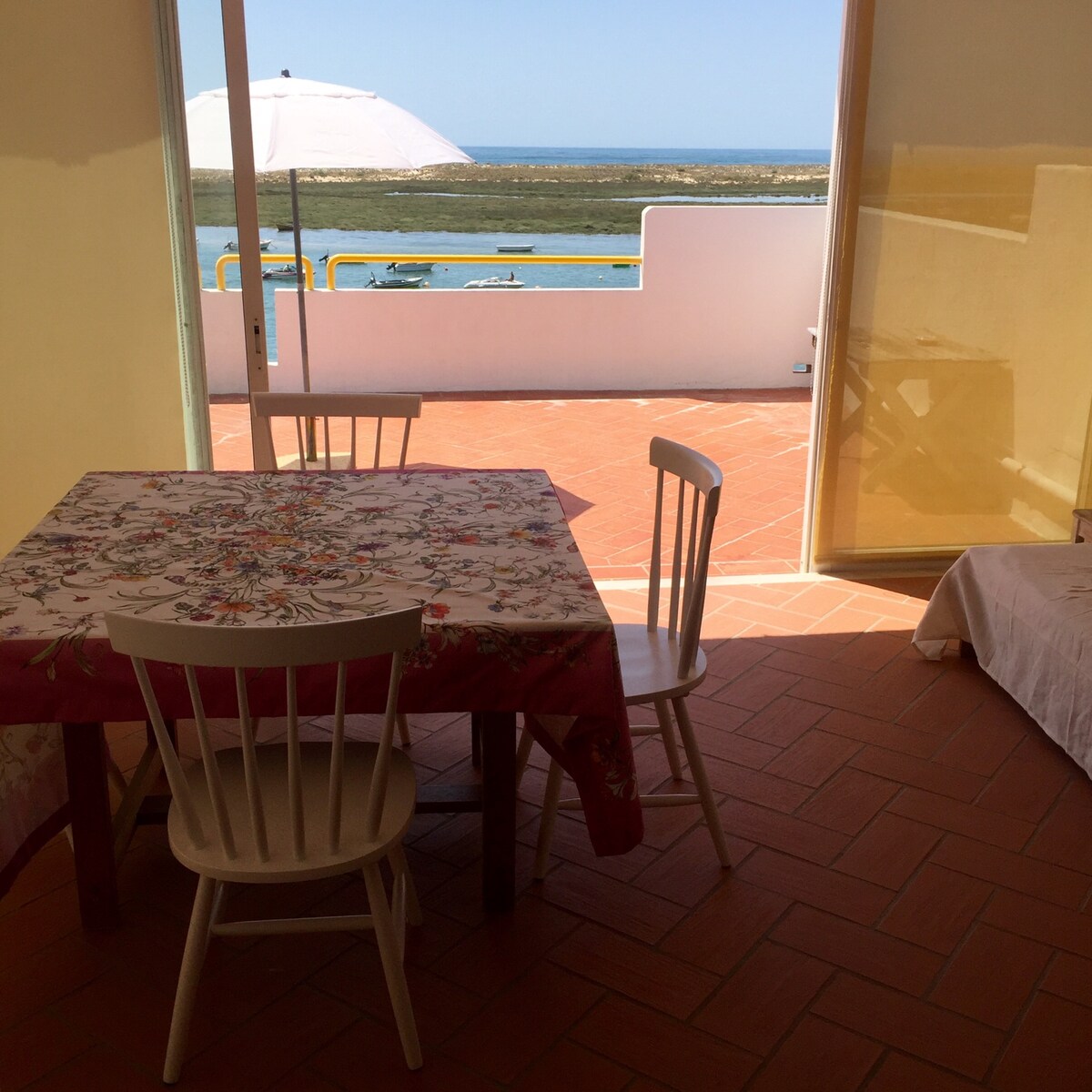 The apartment has a magnificent view of the "Ria Formosa" lagoon and it is located on the front line close to all kinds of commercial services, equipped with everything you need to make you feel at home. You just have to cross the street to get to the boarding pier for one of the best beaches in the Algarve. On the edge of the lagoon is a small fishing village, a footbridge will allow you to walk while enjoying this superb view of the lagoon.