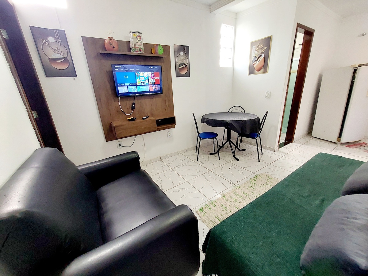 Take it easy at this unique and tranquil getaway. In the space, we have a double bed, 32-inch smart TV, table with two chairs, kitchen area with microwave, refrigerator, coffee maker, blender, sandwich maker, cabinet, sink, dishes, glasses, cups and cutlery. We have a shared garage and barbecue area.