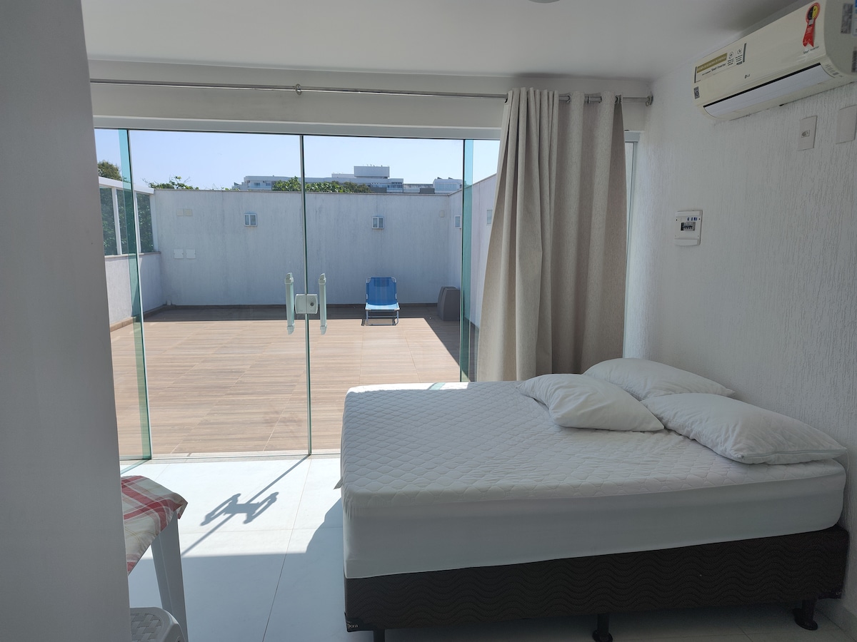 Hotel room-style studio apartment, located in a quiet neighborhood, right next to the event space, internal LED lighting in a romantic and very intimate style with a lot of glamor, ideal for couples, close to Praia da Tartaruga and bakeries, supermarkets, restaurants and bars. 200 meters from the beach near a beautiful area for walking and 5 minutes by car to the center. Bus stop 100 meters on the main road. Easy access to the lakes region and to the