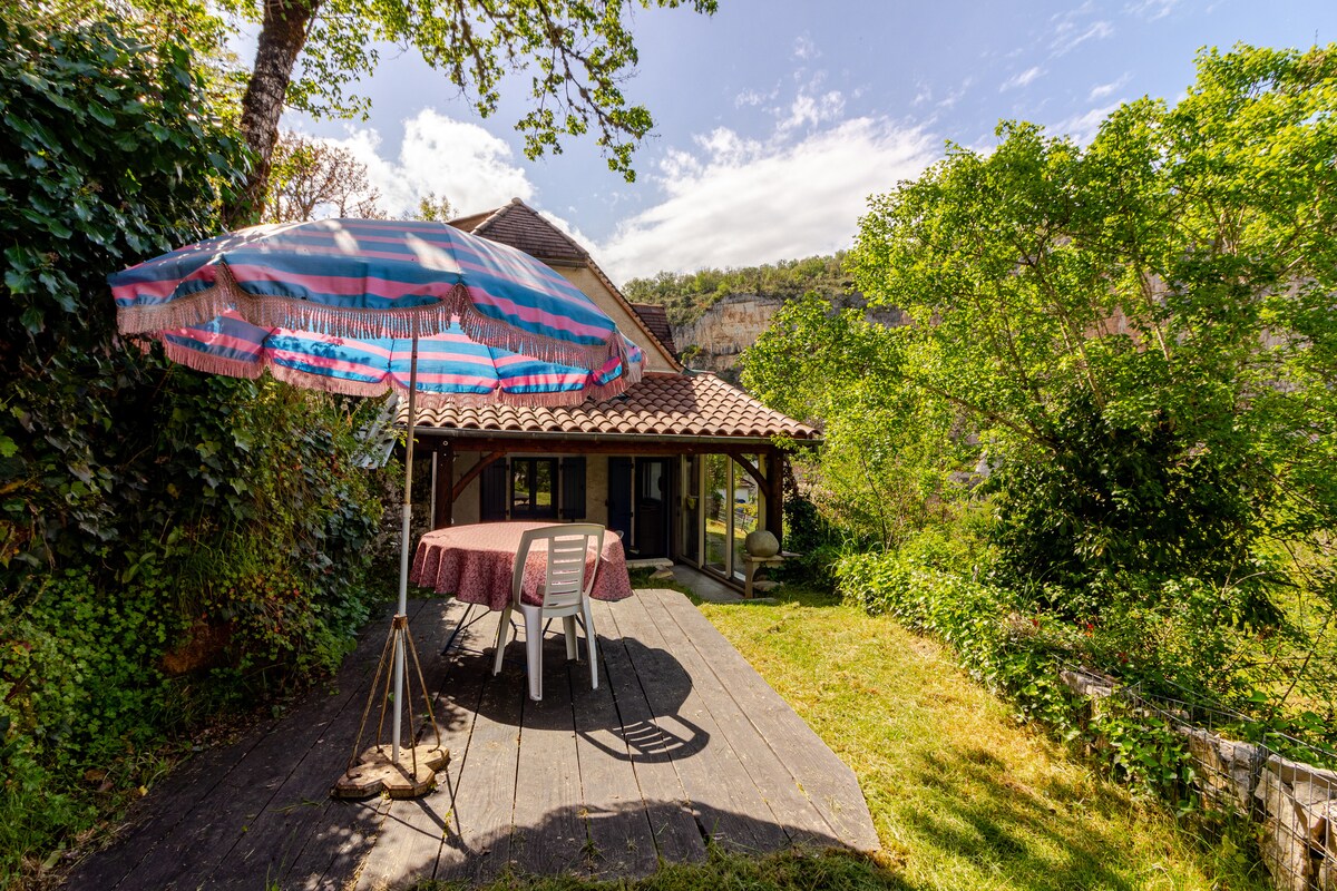 Come and enjoy the peace and quiet of the Célé valley, surrounded by greenery and stone, in the beautiful village of Cabrerets : by LUCIOLE. Just 2 km from the Pech Merle cave and 10 km from Saint Cirq Lapopie, this valley offers a wide range of outdoor activities: hiking, via ferrata, canoeing, kayaking, caving, etc. At the foot of the Monclar national forest, facing the cliffs, you will be welcomed in a small house, dedicated to your personal use, with a fabulous view. There is a box and wifi.