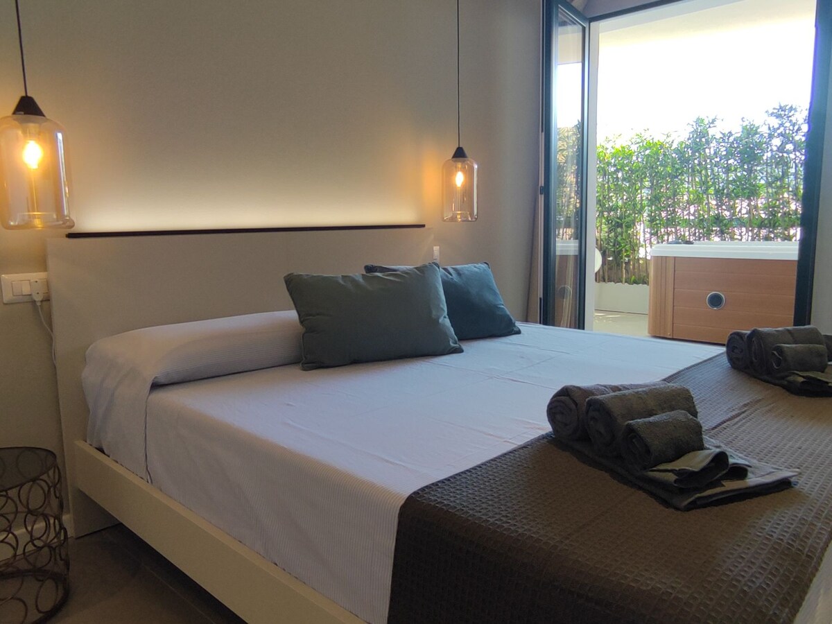 Triple room with exclusive whirlpool, shower with chromotherapy, outdoor kitchenette for exclusive breakfasts or snacks with microwave, coffee machine, kettle for herbal teas, minibar, safe, smart TV; 50 meters from the bus stop and shuttle to the beaches, 20 meters from bike, car and scooter rental. Piazza Incani, the main square of Villasimius, where there are restaurants/bars and shops, is 90 meters from the accommodation. SHUTTLE SERVICE
