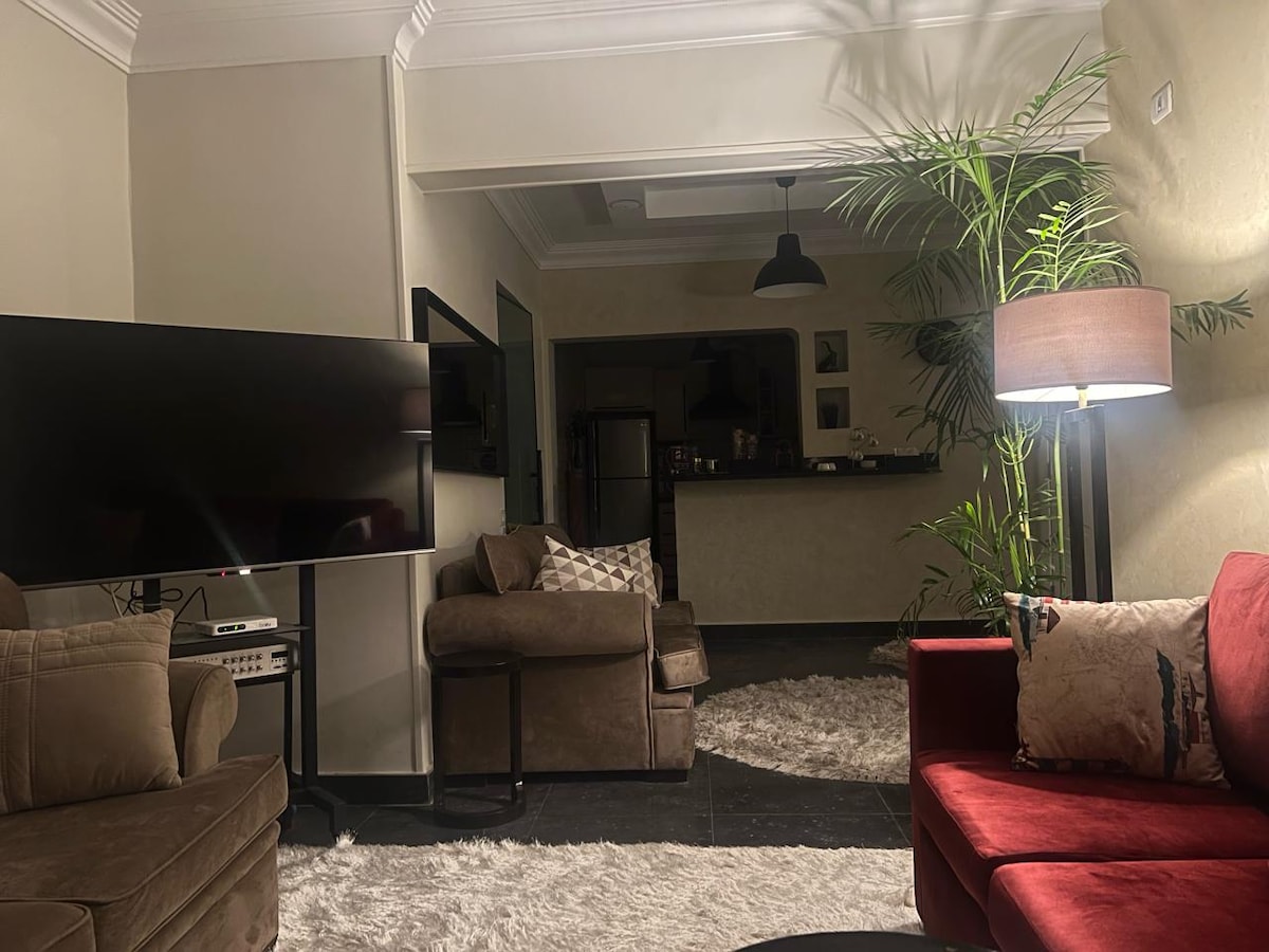 Welcome to our stylish 1-bedroom apartment: Message us for seasonal & special discounts. ●Bedroom (Queen size + sofa bed) ●Living room (smart tv + Couch) ●Dining area for 3 ●Sleek bathroom ●Fully equipped Kitchenette Located in the heart of the city, you'll be moments away from trendy cafés, vibrant nightlife, and top dining spots. ●WaterWay 5A, ●District 5 Marakez ●Uavenues ●The drive ●Katameya ●Garden 8 ●El Malahy ●CFC ●Arabella & many other venues. Contact us for more recommendations.