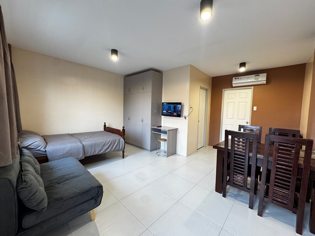 Stay with our place where you can relax, enjoy quality time together and feel an absolute comfort. Very accessible as it is located near to City Proper(10 minutes walk). Our place can accommodate up to 2 guests with 1 bedroom. Stay productive with high speed fiber internet, have fun with Netflix/Youtube on the SMART TV or prepare home-cooked meals with the fully equipped kitchen. You can also order foods you love through Grab Food, Food Panda, Unla la and EZ Man.