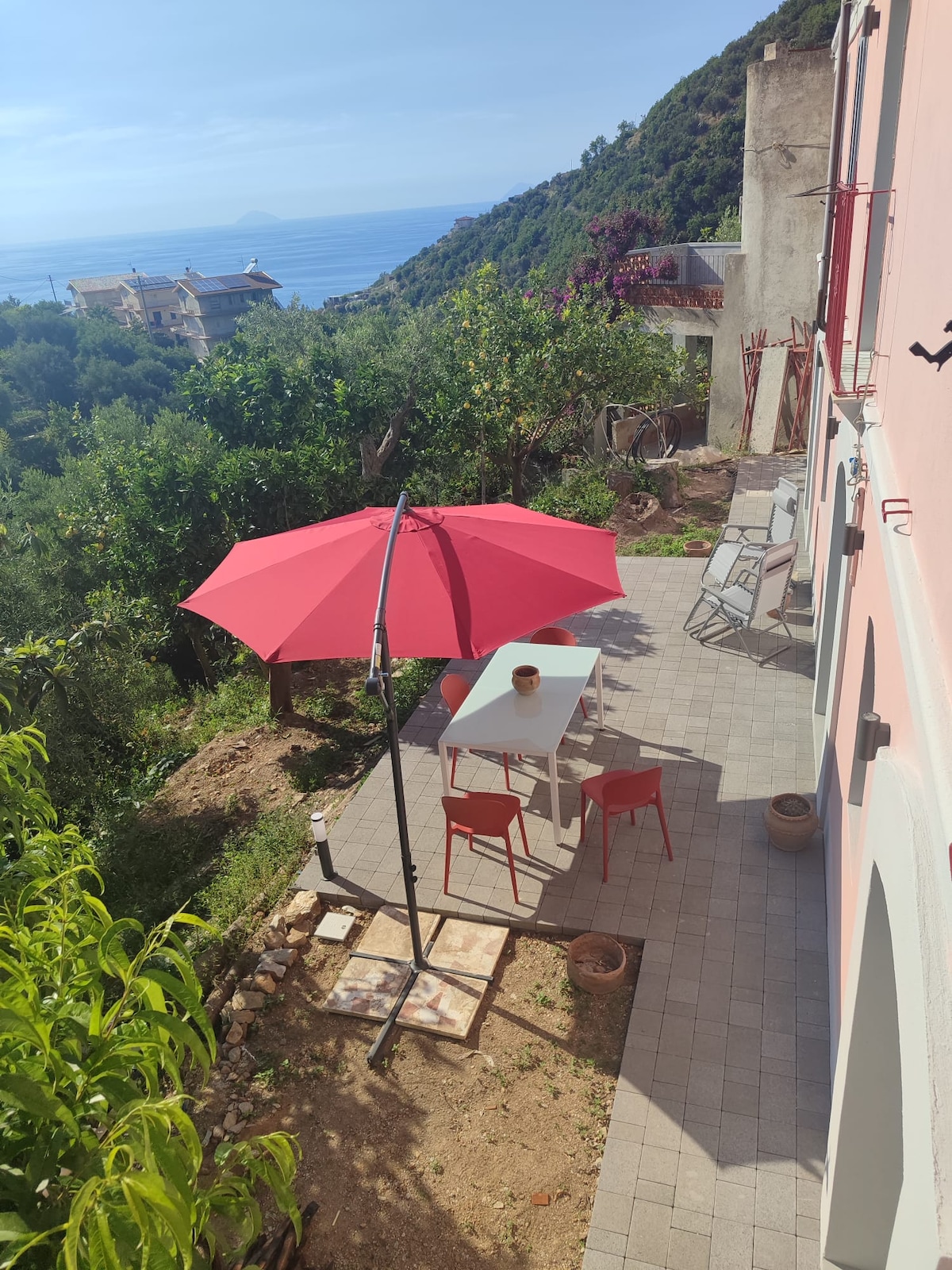 Take it easy at this unique and tranquil getaway. Perched on a secluded hilltop, this rustic Aeolian-style home offers breathtaking views of the sea, mountains and the Islands. Surrounded by nature and a large peaceful private garden filled with lemon and orange trees, it's a home that celebrates simplicity and beauty, designed for quiet mornings, long meals and star-filled nights. While sipping your aperitivo and olives in the evening you'll witness the best sunsets on the terrace and garden.
