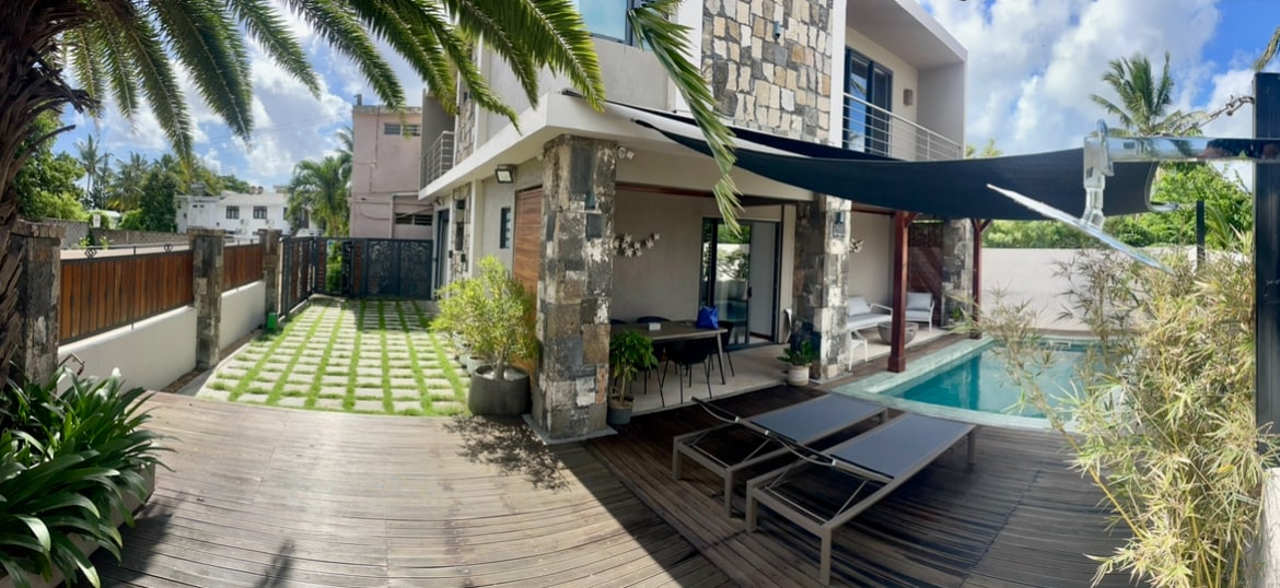 Elegance & refined architecture Ideally suited for couples or family (privacy guaranteed) Located 2km from G Baie and 500m from the beach 2 Bedroom with 2 ensuite bathrooms with A/C Private pool and garden Wifi 20Mbs Netflix TV Security 7/7days & free on site Parking Maid cleaning included 6/7 days Self catering, Washing machine Baby Sitting & cooking on demand Restaurants located 200m away Massage at the villa on demand Supermarket 400m away Back up Generator