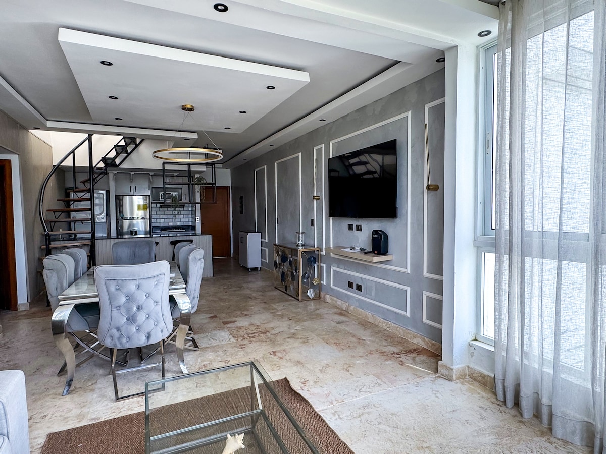 Disfrta de tus vacaciones en nuestro lujoso, moderno y completamente nuevo penthouse estilo loft a tan solo 3 minutos de casa de campo y a 15 minutos de Altos de Chavon. Este penthouse esta ubicado en el vencindario mas seguro y centrico de La Romana. A solo una cuadra del residencial contamos con gym salon restaurantes farmacia mini market Super mercado A 10 minutos del aeropuerto internacional de La Romana y 20 minutos de las hermosas playas de Bayahibe y las excursiones a la isla Saona