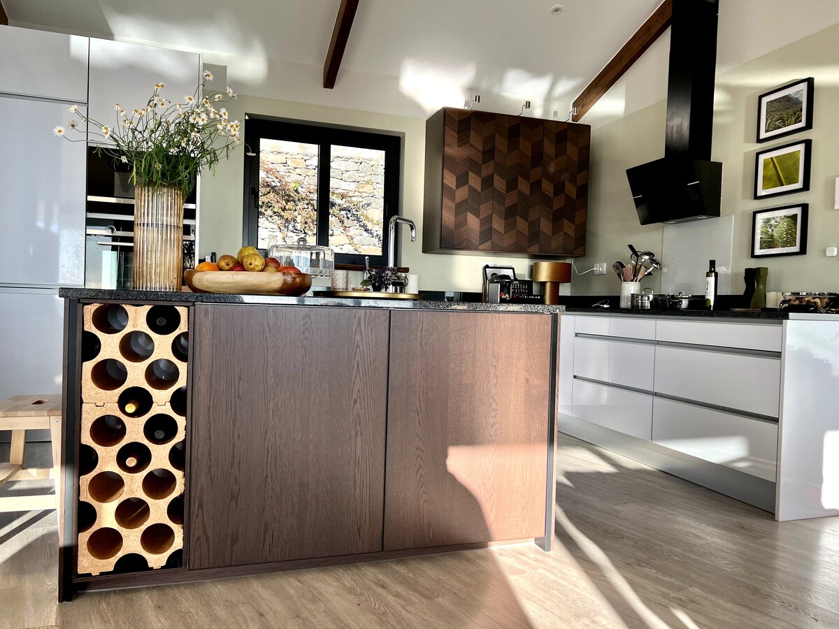 NEW :-) Swim your laps in the long pool. Enjoy the view of the Atlantic Ocean and lush nature while sitting in the garden. A very stylish place that is located in a small quiet village. To relax - but also to be active. Jogging, hiking and swimming - all possible right by the house. Restaurants can be reached in a few minutes by car. For work, there is a study and fast internet. End the day with a glass of rosé and the sunset.