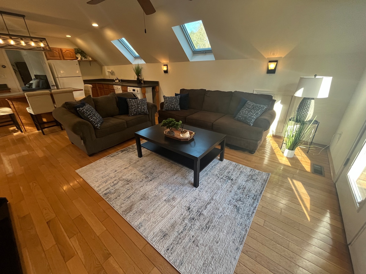 This cozy one bedroom apartment is the perfect place to unwind & relax. Located in the heart of downtown Leonardtown, the Retreat at Fenwick is steps away from many delicious dining opportunities, unique and fun shopping at local boutiques, and entertainment experiences. It includes free wifi, a full kitchen & complimentary coffee bar, a charming eat-in dining space, queen size bed, full size pull out sofa bed, a cozy electric fireplace, workspace, and twin bunkbeds that are great for kids!