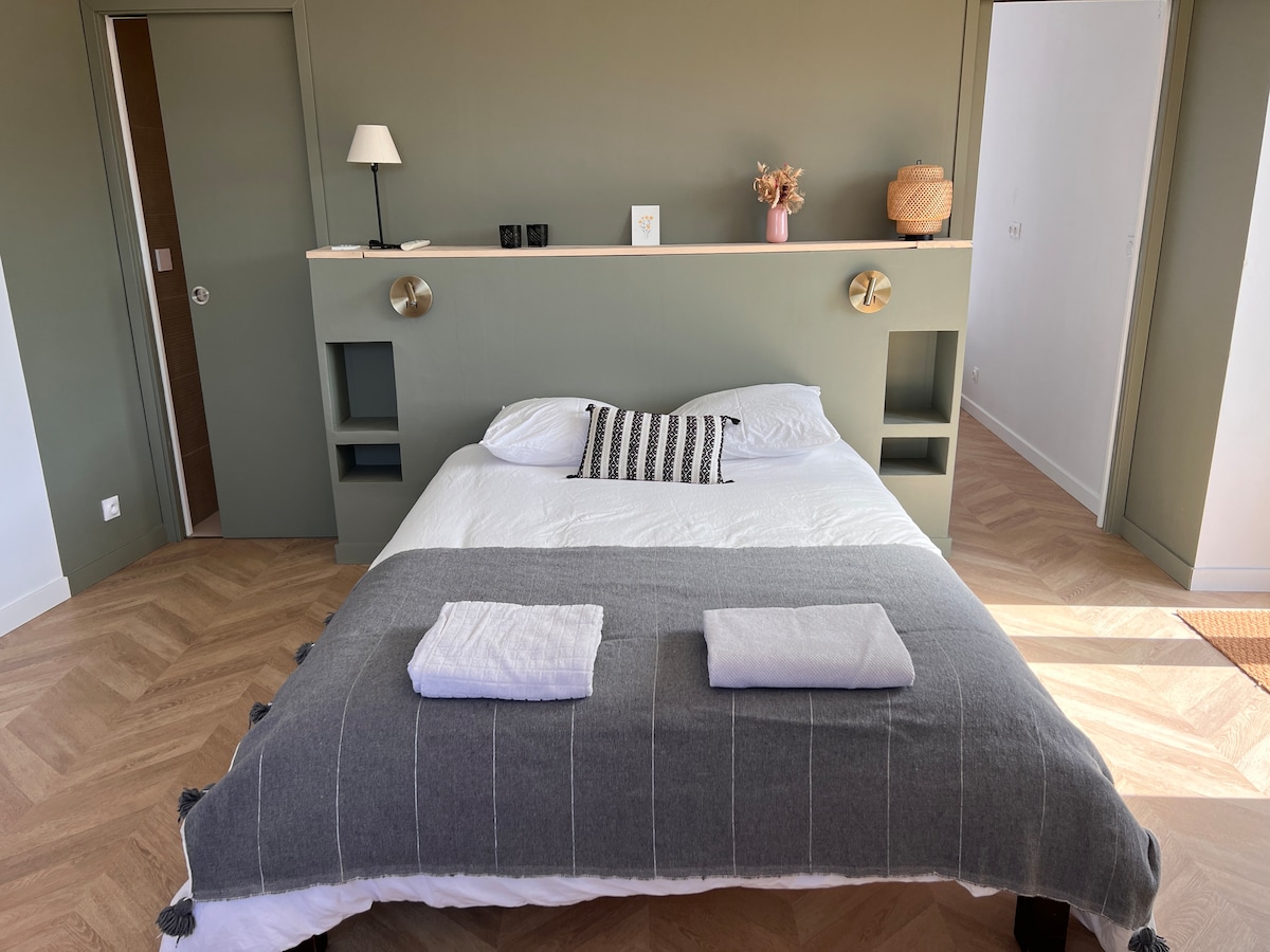 Refurbished studio benefits from a unique rental on the edge of Lyon. Wake up to peace and quiet with views of the Saône, in a family-friendly setting. Private and secure parking with automatic gate: perfect for pets, or a stop with a loaded car. Two separate bedrooms can accommodate two couples or a couple with children. The bathroom with bathtub has just been renovated, and the air conditioning will guarantee you comfortable nights in summer and winter.