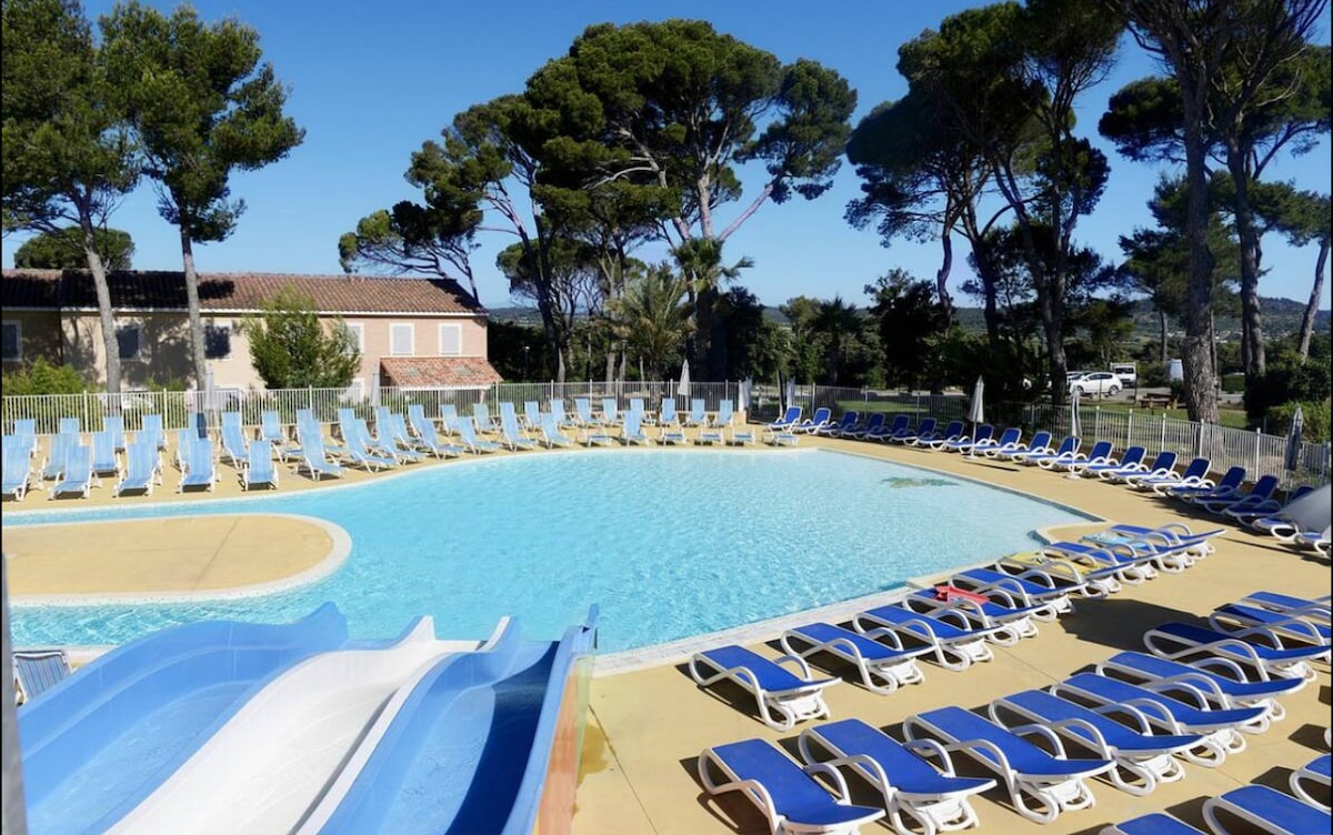 Maison de 39,70m² dans résidence fermée de 21 hectares, parcours santé , piscines intérieur chauffée et extérieure avec toboggan ouverture estival, belle balade pédestre à faire, à 20 min de Nîmes, 35 min de Montpellier, la Camargue à 30 min de la Grand Motte Aigue morte et du Grau du Roi, 5 min de Sommières, terrain de mini golf et basket jeux enfants.Frais de ménage obligatoire, coin cuisine à la charge du locataire ,si besoin draps et serviettes par forfait de 2 personnes 25€ et accueil 40€