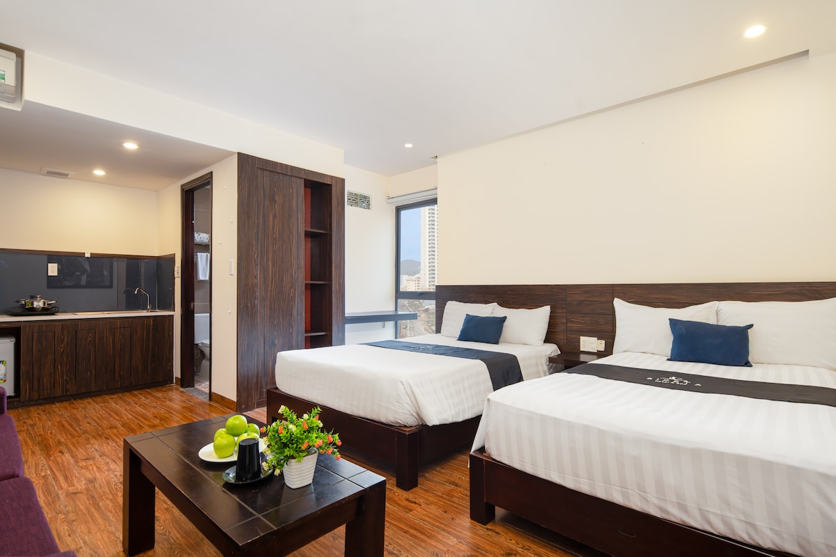 A cozy room with a window in a luxury hotel - 150m from My Khe beach - The beach voted by Forbes as the most attractive on the planet - 2km from Dragon Bridge, Han River Bridge, located in the busiest tourist area of Da Nang - An Thuong, so it is close to famous entertainment and dining spots, extremely convenient for you to explore Da Nang city - Located on a street far from the main road, so it is very quiet for you to sleep well - Outdoor swimming pool and gym on the top floor