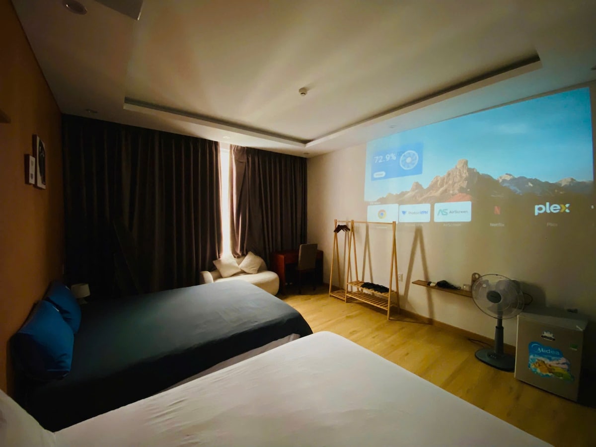 Welcome to your power base in Da Nang — just steps from Dragon Bridge and near My Khe Beach. This stylish studio delivers more than comfort: pool, café, co-working space, and blazing Wi-Fi. But what sets it apart? A real rooftop gym — not a treadmill in a corner, but a full setup made for serious people who don’t skip training just because they travel.