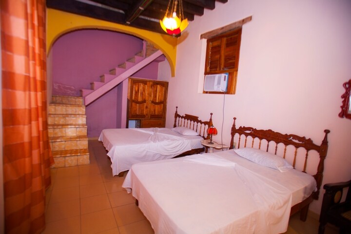 Enjoy the simplicity of this quiet and central accommodation, with its name "Los Tinajones", where we keep 2 beautiful and authentic tinajomes (large earthenware jars). You'll get to know the historic center of one of the oldest and most heritage-rich cities in Cuba. Thanks to our privileged location, you can visit all the tourist spots on foot and enjoy our cobbled streets, where you can see the typical tinajones of Camagüey.