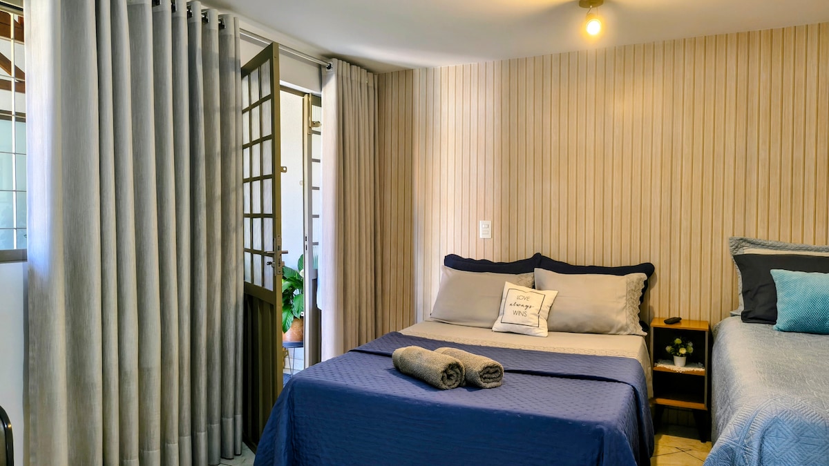 Space without steps, air conditioning (hot and cold), garage, washing machine and barbecue. Approximate time: Centro, 8min. Expoara,11min. Nei Braga Park 20 min. Selmi, 11 min. JBS, 7 min. UEL, 25min(Londrina) Catuaí Shopping, 26min(Londrina) Centro da Vila Oliveira, 5 min. on foot. Close to bakeries, markets, gyms, ice cream parlors, restaurants, gas station, veterinary clinics, churches... It is a charming space, with a yard, hammock and nature present in the garden and pots.