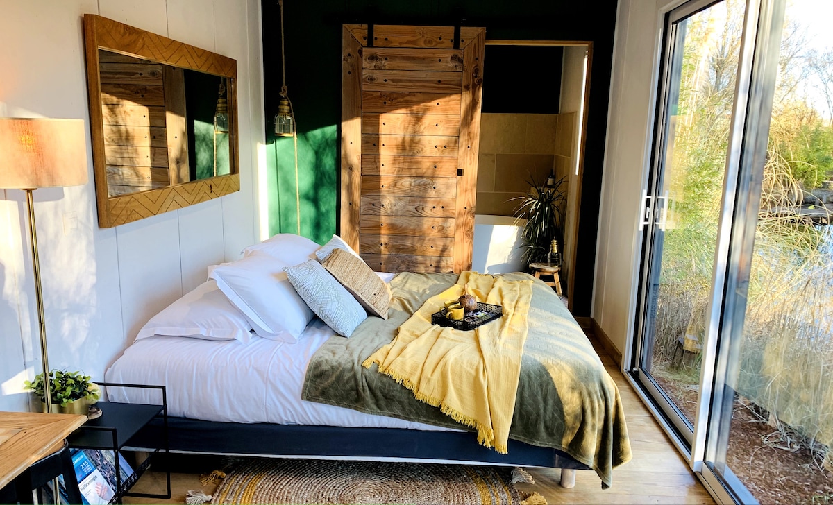Between the Marquenterre Park (10 min by bike) and the access path to the sea (150 m), the cabin is a little slice of heaven for nature and hiking lovers. Nestled in the wild vegetation, cocooning moments are yours. Without getting out of bed, observe nature all around... and if you take your nose out of the duvet, you can enjoy a south-facing terrace by the water to observe the birds.