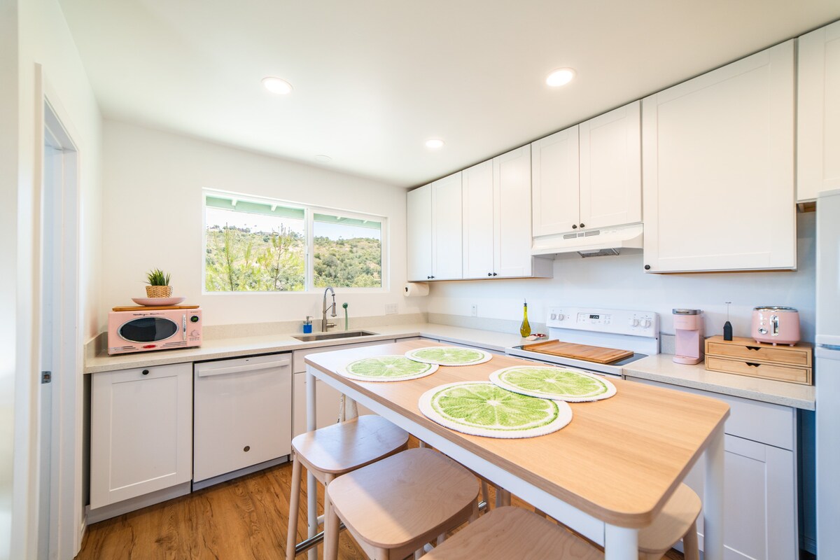 Enjoy Southern California living in our peaceful, private, sun-soaked, casita guesthouse in Fallbrook. Family friendly and boasting a fully equipped kitchen, this cozy spot is ready for a perfect vacay. Dine and unwind comfortably with ample indoor and outdoor seating for up to 6 guests. Only a 25 minute drive to Oceanside Harbor Beach, 30 min to Temecula wineries, 30 min to Legoland, 50 min to SeaWorld and 70 to Disneyland plus all of San Diego County in under an hour!