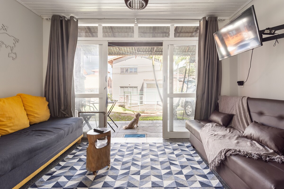 One-bedroom ground-floor house on a cul-de-sac in the South of the Island. Quality Wi-Fi with workspace. Kitchen equipped for longer stays. Garage space. Washing machine. Barbecue grill. The region has a beach (Pico da Cruz/Campeche), supermarket, freshwater lagoon, restaurants, breweries, shopping mall and movie theater. All this is within walking distance! It is ideal for those looking for comfort, practicality and a fair price in Florianópolis.