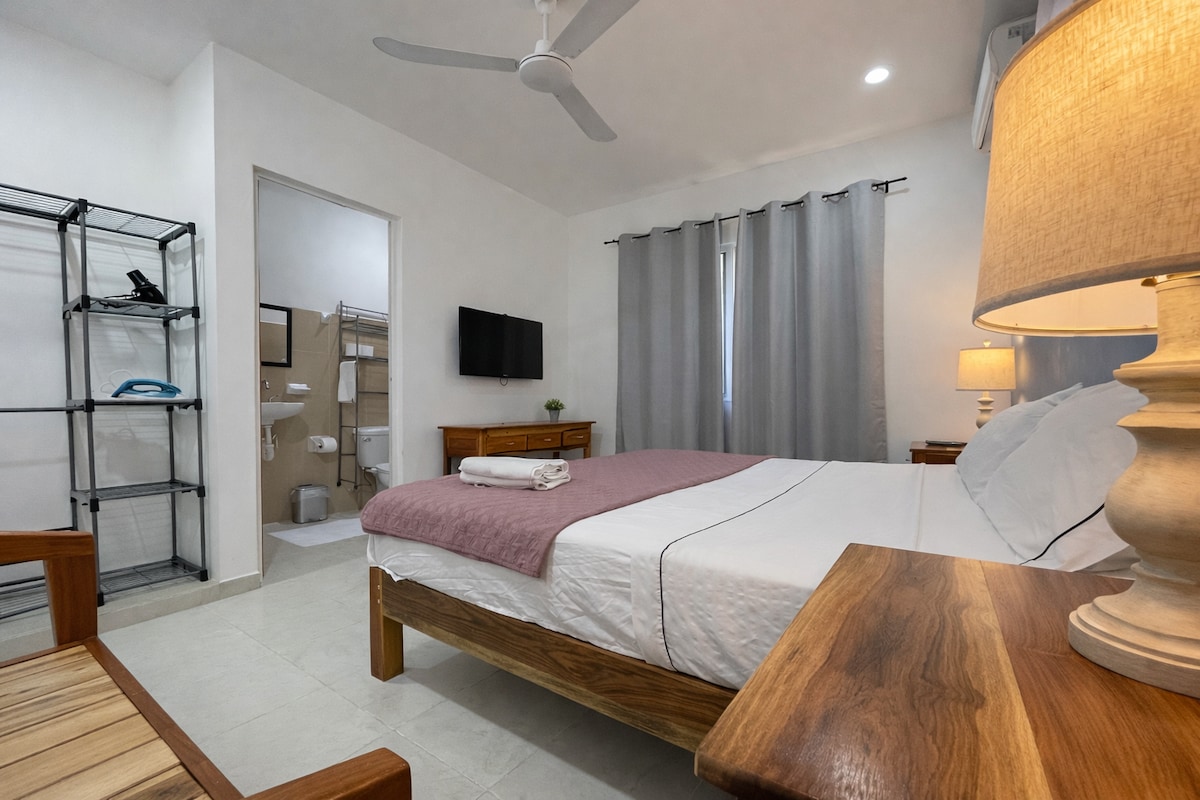 Welcome to Kai Blue 4, your private second-floor retreat, designed to offer you comfort and a touch of coastal style. This one-bedroom apartment is a quiet and modern space, perfect for your stay in Campeche.