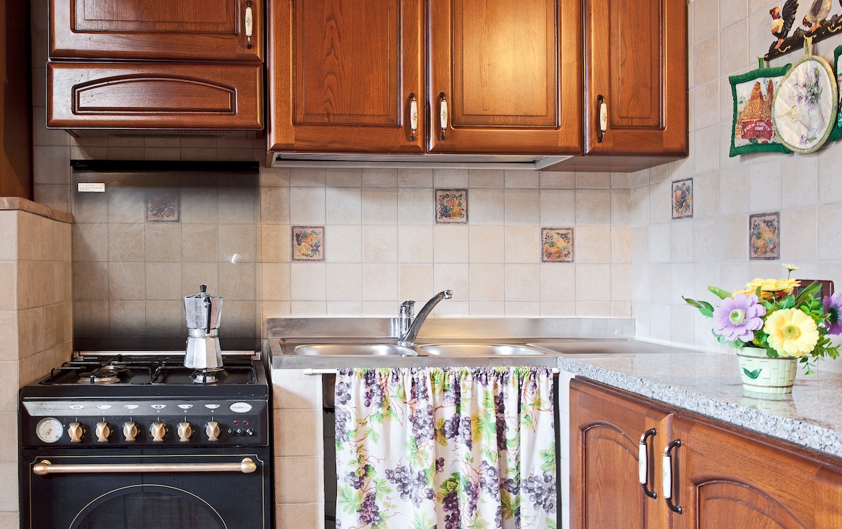 A big apartment consisting of a kitchen and dining room at the entrance; from here you climb to the upper floor where there is a livingroom with sofa and two armchairs, a TV equipped with a DVD player. From the living room a corridor leads to a first double bedroom with private bathroom, followed by a small hallway serving two other double bedrooms with a common bathroom.