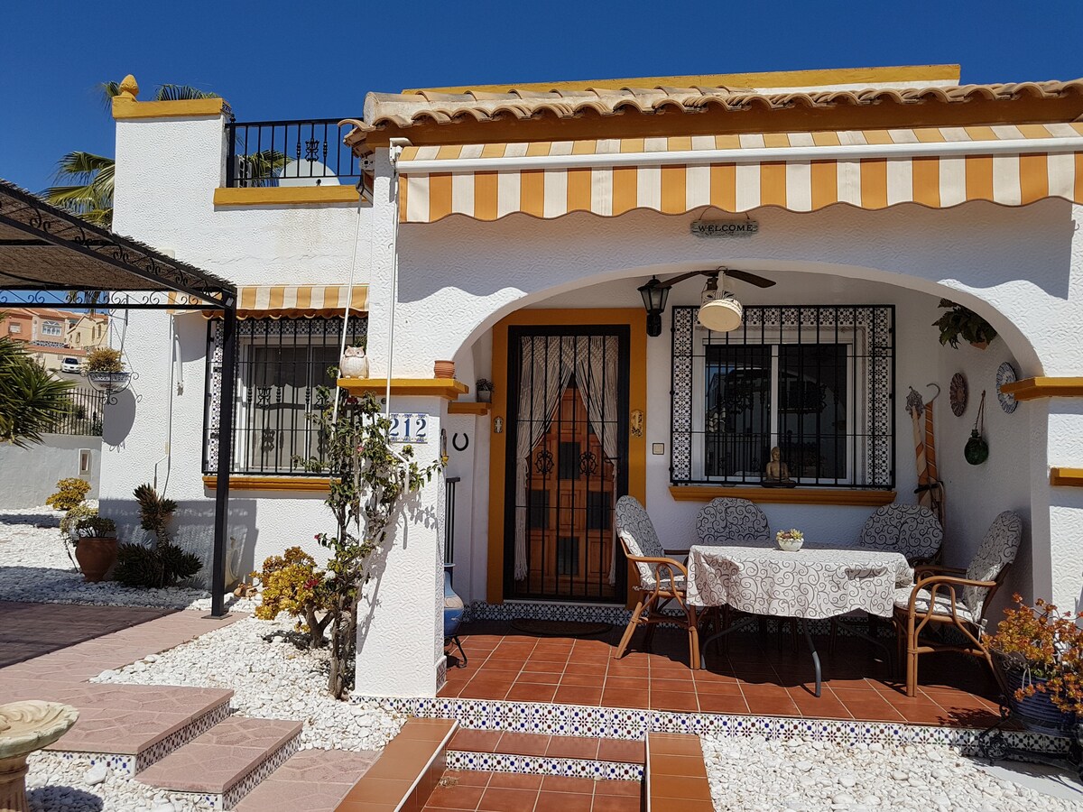 The well-kept private 80 m² CASA DEL MAR is located on a quiet corner property. You can enjoy the sun all day, on the beautiful ground-level property or on the magnificent upper sun terrace with a cozy conservatory. There is a BBQ for cozy barbecue evenings Wi-Fi In the immediate vicinity are 2 wonderful COMMUNITY POOLS. The beautiful beaches are only a few minutes' drive away You can reach various good restaurants in about 10 minutes on foot. Supermarkets are within a short drive.