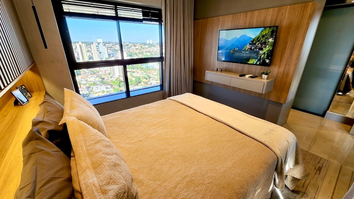 Our ultra-luxury 24th-floor apartment has everything for a luxurious and comfortable stay. Close to Avenida Afonso Pena and Campo Grande Shopping Mall, the view from this studio is a show in itself. The studio has air conditioning, a queen size bed, SmartTV, a kitchen with an island, a sofa, and a beautiful closet At Vertigo Premium Studios you have access to a Beauty Salon; Sauna; Heated and Infinity Pool, as well as a restaurant on the ground floor. Welcome