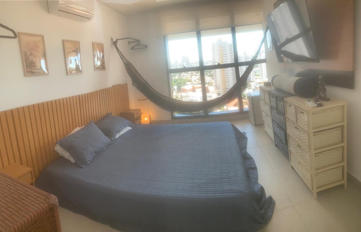 Studio sofisticado, moderno e de alto padrão, localizado próximo a principal avenida de Campo Grande, a Afonso Pena. O espaço é perfeito e aconchegante para seus dias de lazer ou trabalho. Completamente equipado com todos os utensílios de cama, mesa e banho, TV digital e dois aparelhos de ar condicionado e internet. O edifício ainda possuí uma linda vista panorâmica para a cidade. Além disso, o prédio em que está localizado oferece todo o conforto e luxo que você merece.