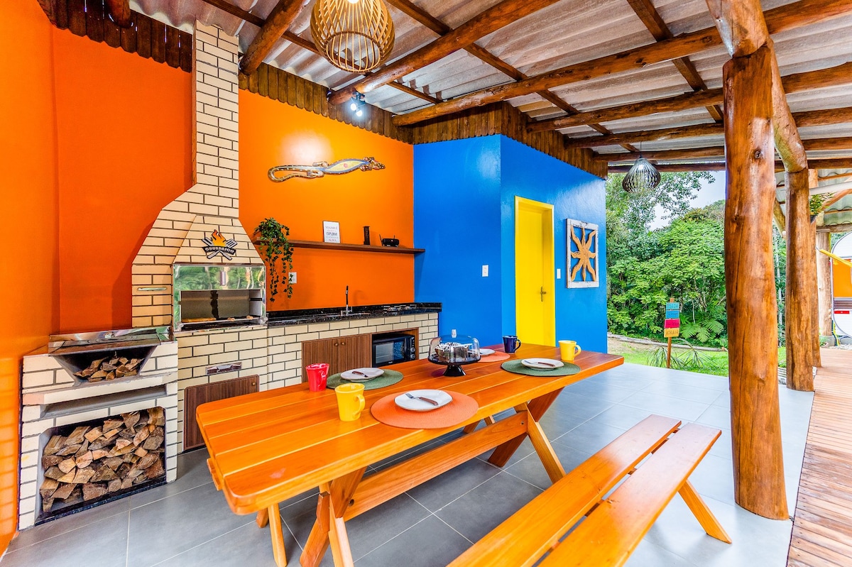 Wake up in an exclusive bus house, surrounded by nature and less than 2 km from the Armação and Pântano do Sul beaches. Here, comfort and adventure meet in a unique space that blends rustic charm. Enjoy a cozy deck with a hot tub and barbecue area, plus an indoor bathtub with a view of the lush greenery. Every detail, such as the bus-shaped handmade soaps, is designed to make your stay unforgettable. Come and experience this one-of-a-kind getaway!