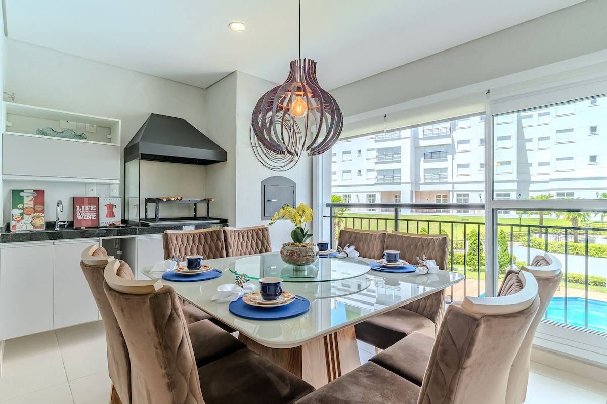 Superitá: full resort just 10 min from Capivari. Spotless, cozy flat with tasteful décor, premium linens, and a fully equipped kitchen and gourmet area. Perfect for families and couples, it offers 3 bedrooms, a dedicated Home Office, 2 bathrooms, 1 half bath, and fast Wi-Fi. Resort-style condo with heated pools, complete gym, sauna, tennis and beach tennis courts, game room, kids’ area, and vegetable garden. Guests praise the warm hospitality and the peaceful setting, yet close to everything.