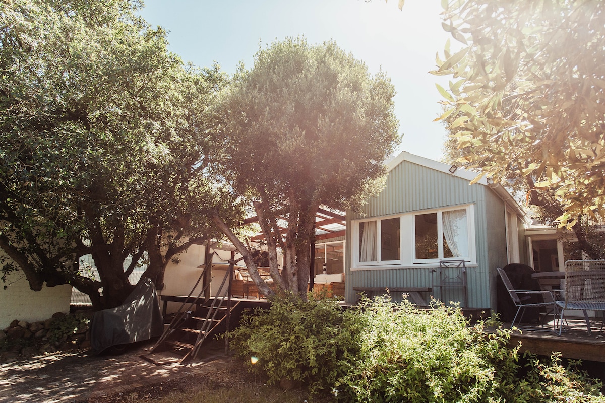 Stay at Cyphia Close Cabins in Hout Bay, in a unique, micro wooden cabin with magnificent outdoor spaces, sea & mountain views, surrounded by beaches & sanddunes while still close to town/CBD Features a queen sized bed, en suite bathroom, kitchen, work-from-home, deck & open firepit. Off street parking Internet: upto 500MB down/200M up. Loadshedding backup Not secluded; we have other cabins & animals onsite Really small & no space for large luggage. Good for a few nights and limited cooking