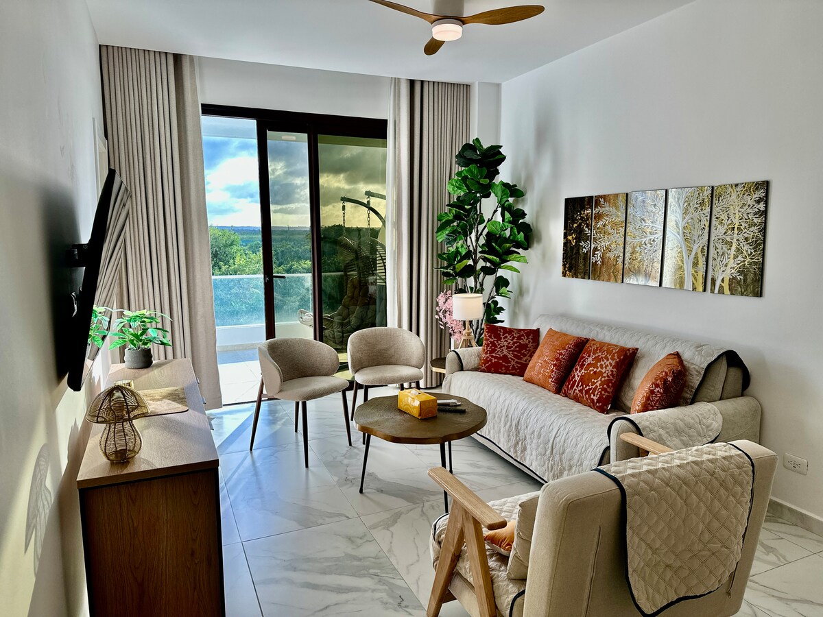 Relax in this cozy, elegant and harmonious space. It is a modern apartment with spectacular views of the pool and the 18-hole golf course designed by Jack Nicklaus. Enjoy access to: Tennis and paddle club, private beach club with pool, restaurants and bars, the Hard Rock Hotel & Casino. This property is the perfect place to enjoy the best of Punta Cana, comfort, style and fun in one place. PLEASE CHECK "OTHER THINGS TO NOTE"