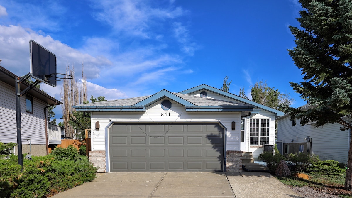 About the Blue Bungalow Enjoy your stay at 'The Blue Bungalow'. A 4 bed, 2 full bath tastefully renovated and decorated home in Southwest Calgary. It is fun, bright, and sleeps 8 comfortably, we have board games, foosball, arcade games, a chalk wall, two 55" TVs, A/C, a gas BBQ, and plenty of parking & a garage. It’s Nicely furnished, in a great location with plenty to do for everyone, see our list's below of highlights of our home & things near by. Perfect for your next Calgary stay