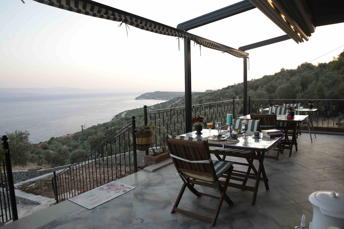 You can enjoy 100mt far from sea with sea view terrace&balcony. Can make BBQ(pre-check need) in garden and sunbathe in terrace with own privacy. Villa has 3 floor with 2 wc and bathroom. 3 queen size bedroom. We provide 2nd&3th floor to guests. Can walk to sea 2mins. You can fishing and diving in beach. You can enjoy with bosphorous view. You will wake up with birds sounds and relax in terrace which nearby olive trees also can eat organic vegetable also can drink local wine with ordered.