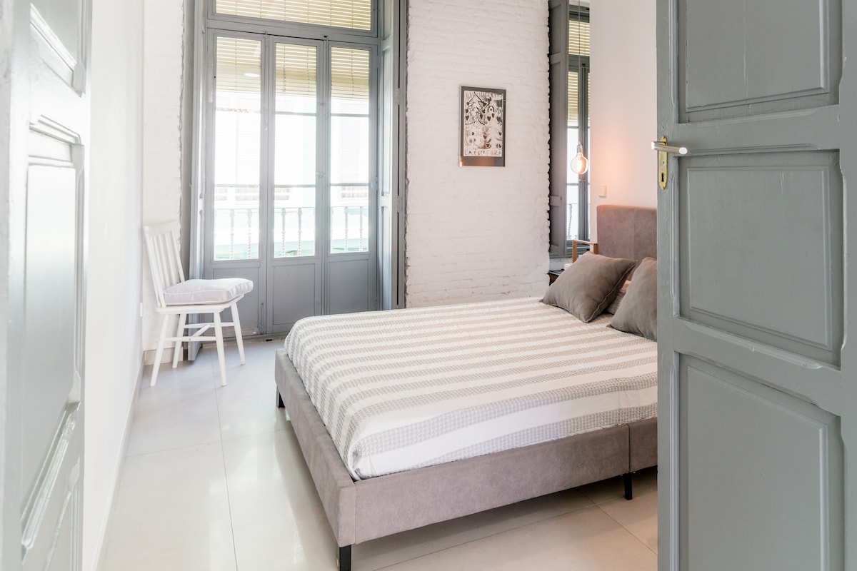 This is our retirement house, we will like to move here in the future, but in the meantime, we hope you have a wonderful stay, in Valencia trendy Cabañal. The house is from 1942, we have totally renovated and have divided it into two houses R and M. M house is located in the upper level. As you enter, you will find the living-dinning room and the kitchen. All of them overlook the patio and make it a great place to enjoy. There is a heater on the patio, so you can enjoy it all year round, but we have very few cold days in Valencia. There is a small hall in the access, which leads you to the two bedrooms. Both of them have en-suite bathrooms, with a shower, and the bed is 160x200. There is an upper floor that you access from the living room, which has a bed 160x190, and a bed with a pull out bed underneath, and a bathroom with a shower. As you enter the building there is a hallway, there you can find a closet, where you can leave your bags in case that you need an early check-in or late checkout. Also, you can find the drier and a washing machine. The house is in El Cabañal, an authentic and traditional neighborhood, with a very rich life and a great light and atmosphere. A seaside village with restaurants, bars, and markets. If you are lucky, you can hear the local artists playing the guitar or singing. It’s close to the beach and port, and only 400 meters from the metro station that has trains which goes directly to the city center and airport