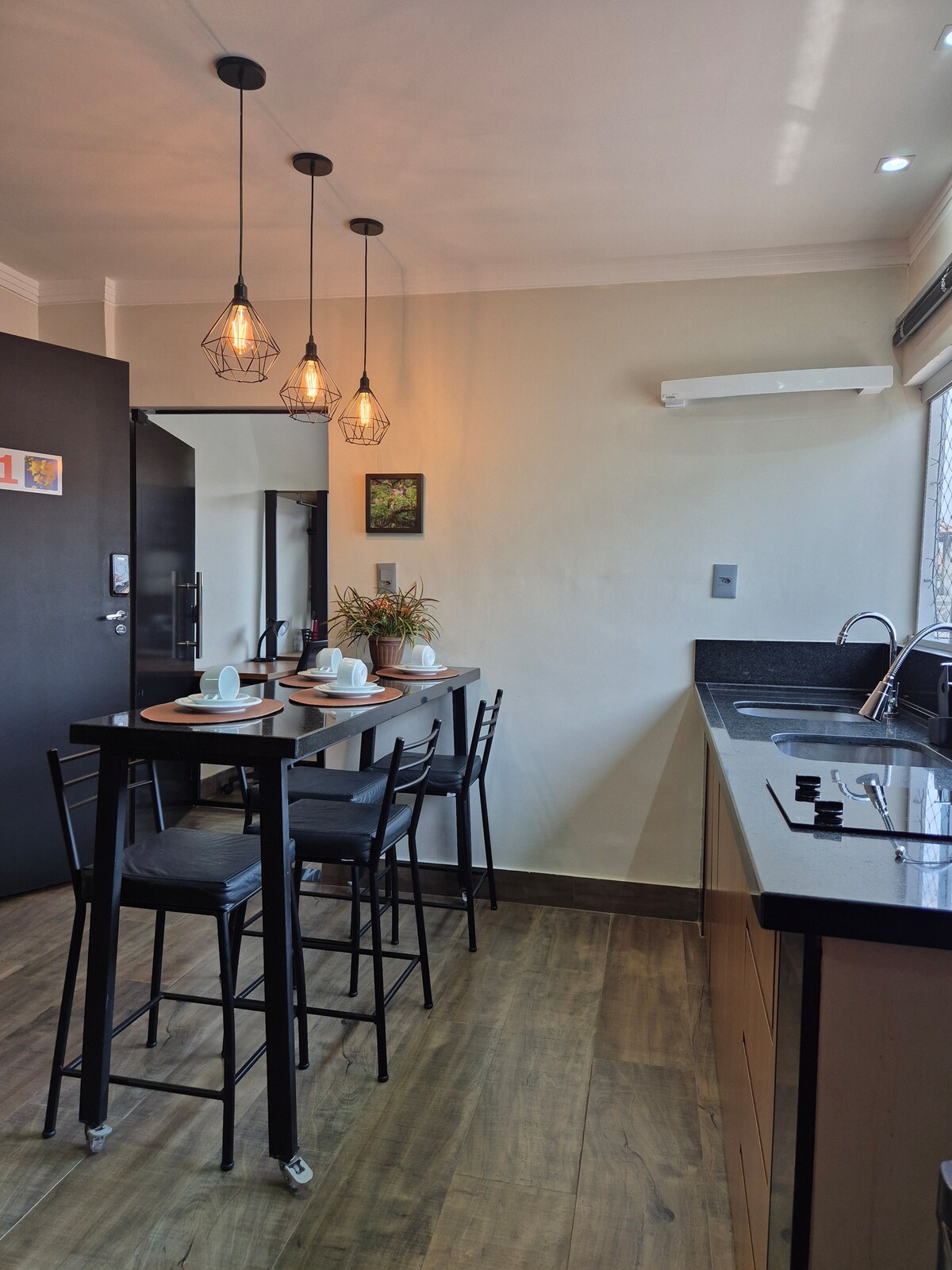 Close to the airport, subway station and the best mall in Brasilia. Easy access to shopping and leisure centers. Cozy and tasteful, private parking, Wi-Fi, cable TV, Netflix, air-conditioning in the living room and bedroom, microwave, electric oven, stove, refrigerator, equipped kitchen. The condominium has the option of 3 restaurants with a varied menu and breakfast, lunch and snacks, as well as a 24-hour self-service convenience store. Swimming pool, Sauna and Gym. All new furnishings.