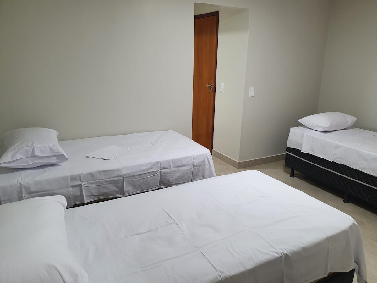 8 km away from the airport. Private suite on the property's terrace, with concrete bed and LED light, pocket spring mattress, 50" Smart TV, exclusive internet with 500 megabytes of speed, private bathroom, fitted wardrobe, air conditioning and ceiling fan, minibar, access to the property's terrace to contemplate the sunset, clean, organized and quiet environment. The city was a pioneer of Brasilia, it has local shops nearby (bakery, market, pharmacy, restaurants, etc.).