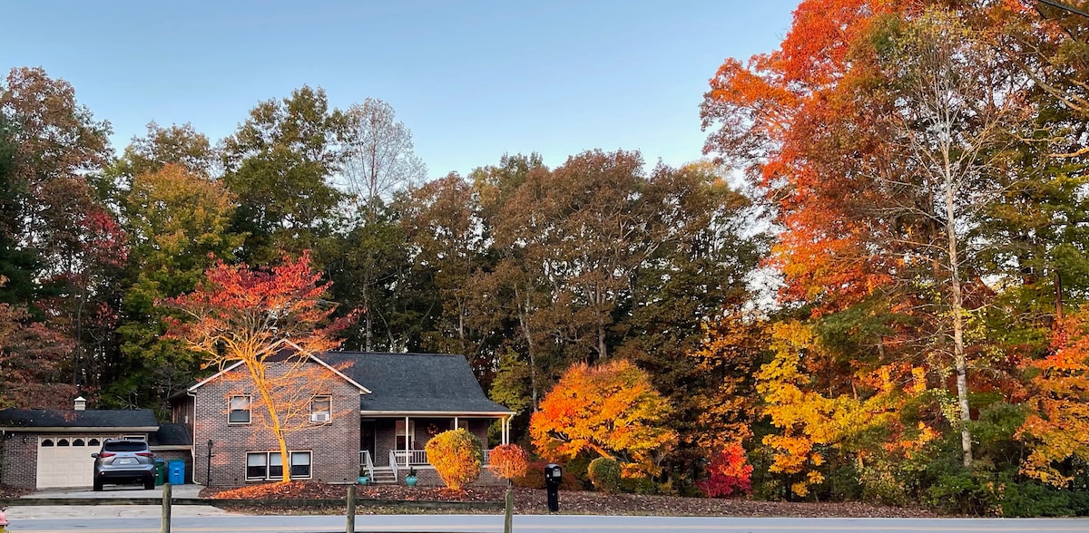 Helene Update: Our house is back to normal after the storm. Relax with the whole family at this home away from home. Located in a quite established residential area that is only 12 minutes from Asheville downtown. 3 minutes to I-40 (at exit 44). Everything just as if you were at home, including ★Automatic Espresso Machine ★Coffee ★Tea and Tea Kettle ★Fully Equipped Kitchen ★Laundry ★Grill ★Wifi ★TV ★Fire Pit ★Kind Bed