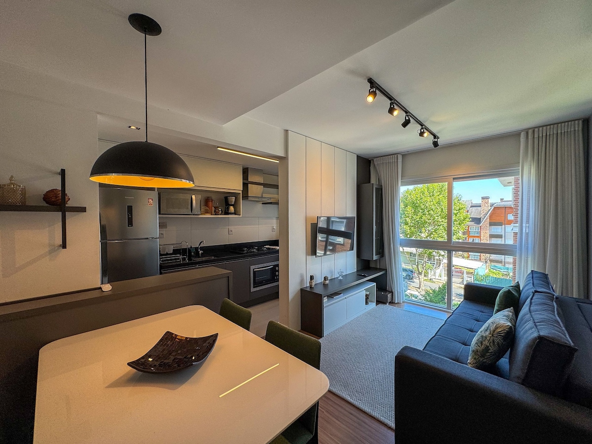 Enjoy an unforgettable stay in our modern flat, ideal for up to 4 guests. Located in the Serra Class complex, the flat offers full kitchen with all utensils and pans, air-conditioning in all rooms, a fireplace for the coldest nights and maid service. We have a queen-size bed and a sofa bed. In addition, the Serra Class offers several amenities: Heated pool, sauna, kids space, gym and more. Book now and live unforgettable moments!