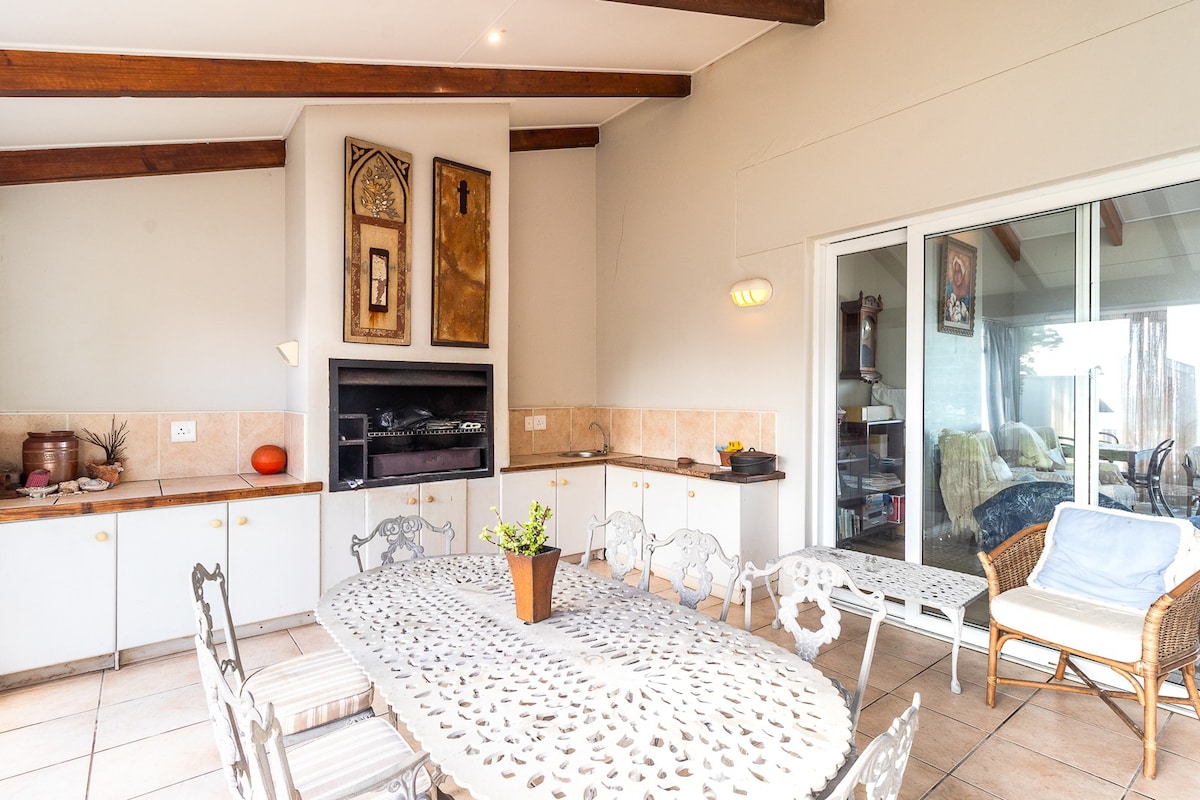 This elegantly styled two bedroom cottage provides you 5 star comfort, unique location and stunning ocean view. Newly renovated interior with stylish furnishings and fittings, you will fall in love with the cosy feeling and tranquil environment. Walk down to the beach, breath in the ocean mist and leave only footprints behind ….. Equipped with inverter system to power lights, TV, Wifi, alarm and water pump. Gas hob so load shedding unaffected ..