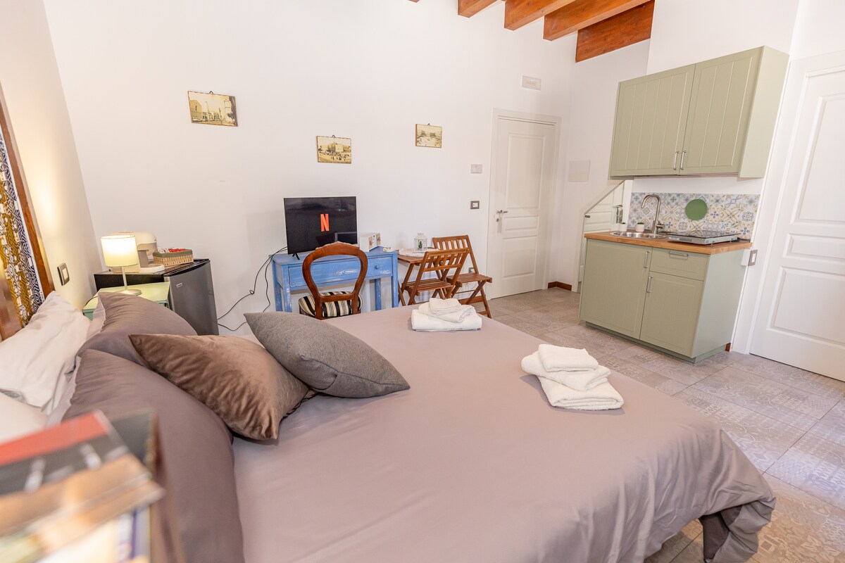 Experience Barletta from a historic home in the heart of the center! Restored two-room apartment in a modern style, perfect for couples and smart workers: ultra-fast WiFi, air conditioning, equipped kitchen, cozy double bedroom and private bathroom. Discover the center on foot, between the sea, culture, and good food. Self check-in from 3 p.m. onwards for maximum freedom. An intimate refuge where you can feel at home, even while traveling.