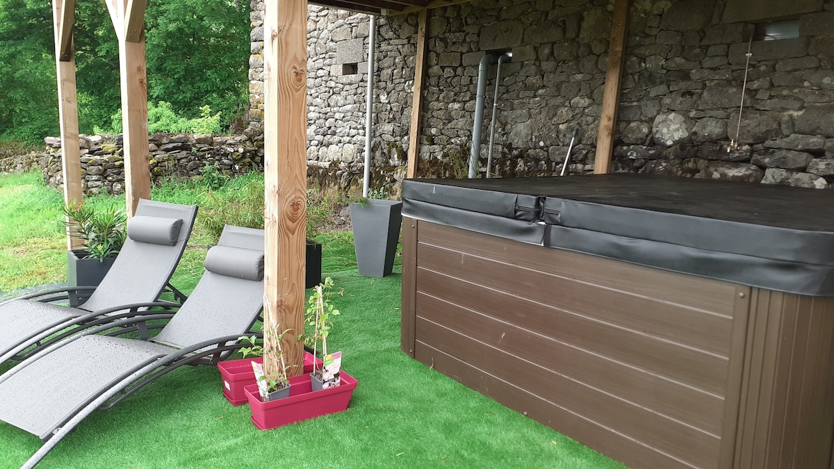 find the warm atmosphere of an old barn and let yourself be carried away by the natural charm of wood and stone a place a little timeless, cozy, warm and comfortable near the GR Vallée de la Truyère, many natural and heritage discoveries await you In this hot weather, there is no need for air conditioning, the thick stone walls create a cool atmosphere