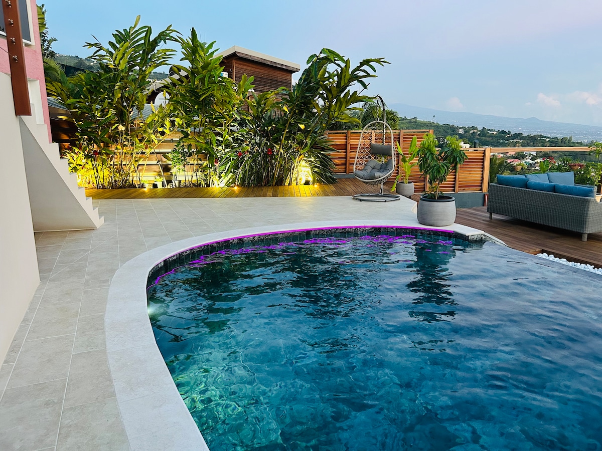 We welcome you to our charming seasonal rental "Villa Roche Café", rated ****, located 7 minutes from Saint-Leu beach, 5 minutes from the four-lane road and 200 m above sea level. This cozy villa designed for 6 people is ideally located to relax with friends and family. You can enjoy the beautiful panoramic view highlighted by all travelers by the private pool.