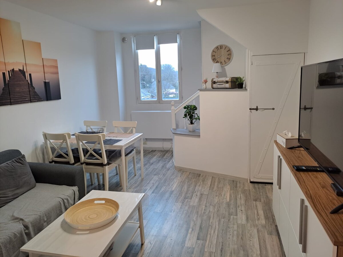 For your vacation. Work BATHROOM RENOVATED IN 12/2023 New sofa bed 10 mm from PALUEL (CNPE) 3 mm from the industrial area of Sasseville. (Onet Training). 5 min from Cany-Barville 10 from St Valery en Caux Furnished rental near the sea. Garden, parking. Dining area and living room, bathroom with washing machine, toilet 1st floor, 1 large bedroom sleeping 2 people (2 single beds) Wi-Fi by repeater 10 m from the sea 15 from Veules-les-Roses Cleaning: 50.00 if the place isn't clean