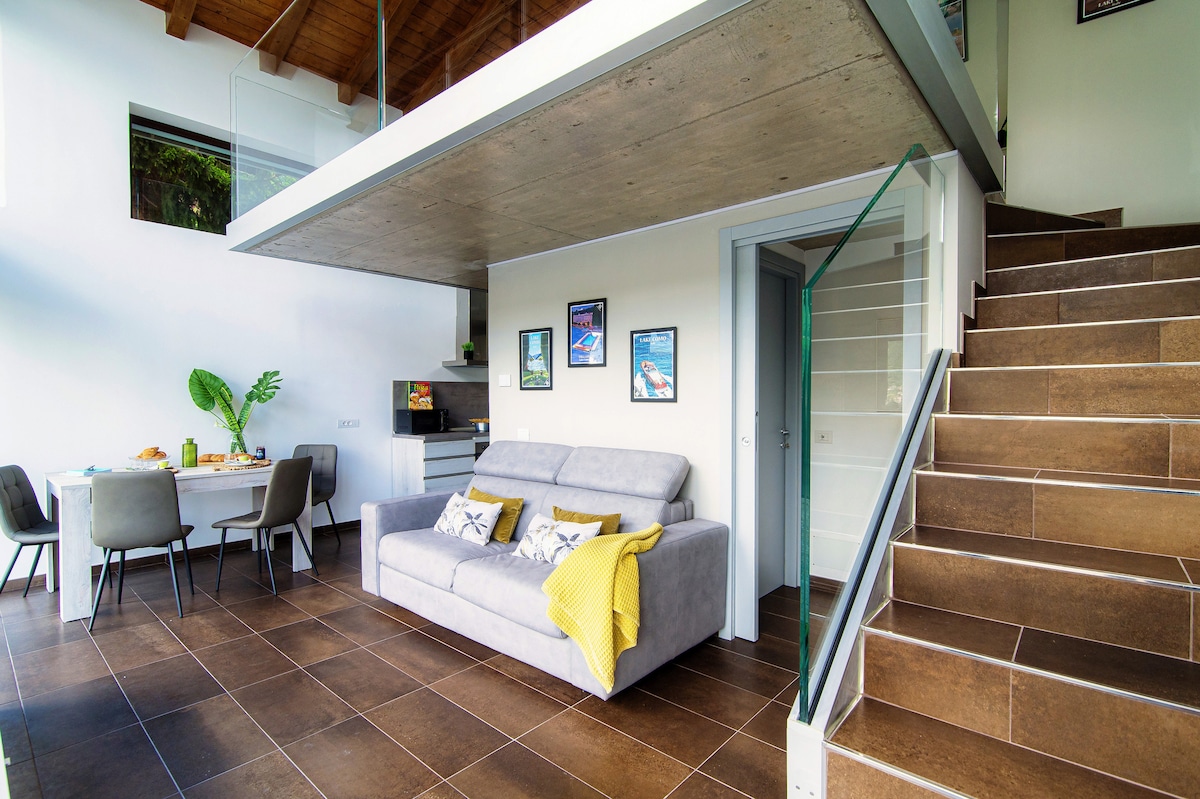New eleven apartment is located in Onno, a fraction of the town of Oliveto Lario, on the western shore of the Lecco branch, at the foot of the famous Lariano Triangle, with its natural parks and its geological and botanical wonders, overlooking the wonderful beach, 10 minutes drive from Bellagio and Lecco. The location is elegant and relaxing, ideal for spending unforgettable moments on Lake Como. The furniture is modern, gray and white predominate.