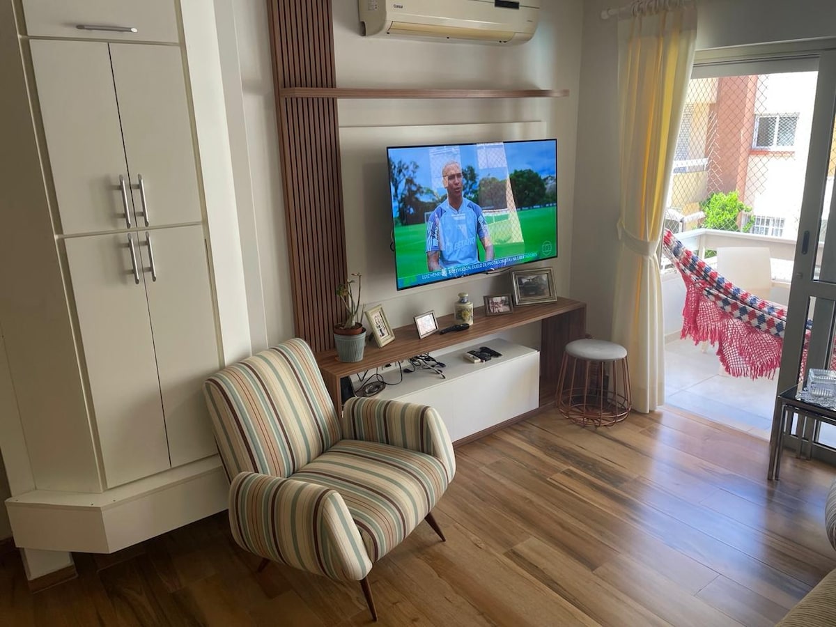 Enjoy the ocean view and sunrise from every room in the apartment. Feel the breeze and the sound of the waves on the sand. Comfortable, decorated, bright and airy apartment. A few steps from the sea, Praça do Farol and Praça Bassani. 3 blocks from the National supermarket and the center of the street vendors. Internet, Wi-Fi, Netflix, Globoplay, 2 smart TVs, ceiling fans, air-conditioning in both bedrooms and living room, microwave, electric oven, washing machine, elevators, garage, terrace and swimming pool.