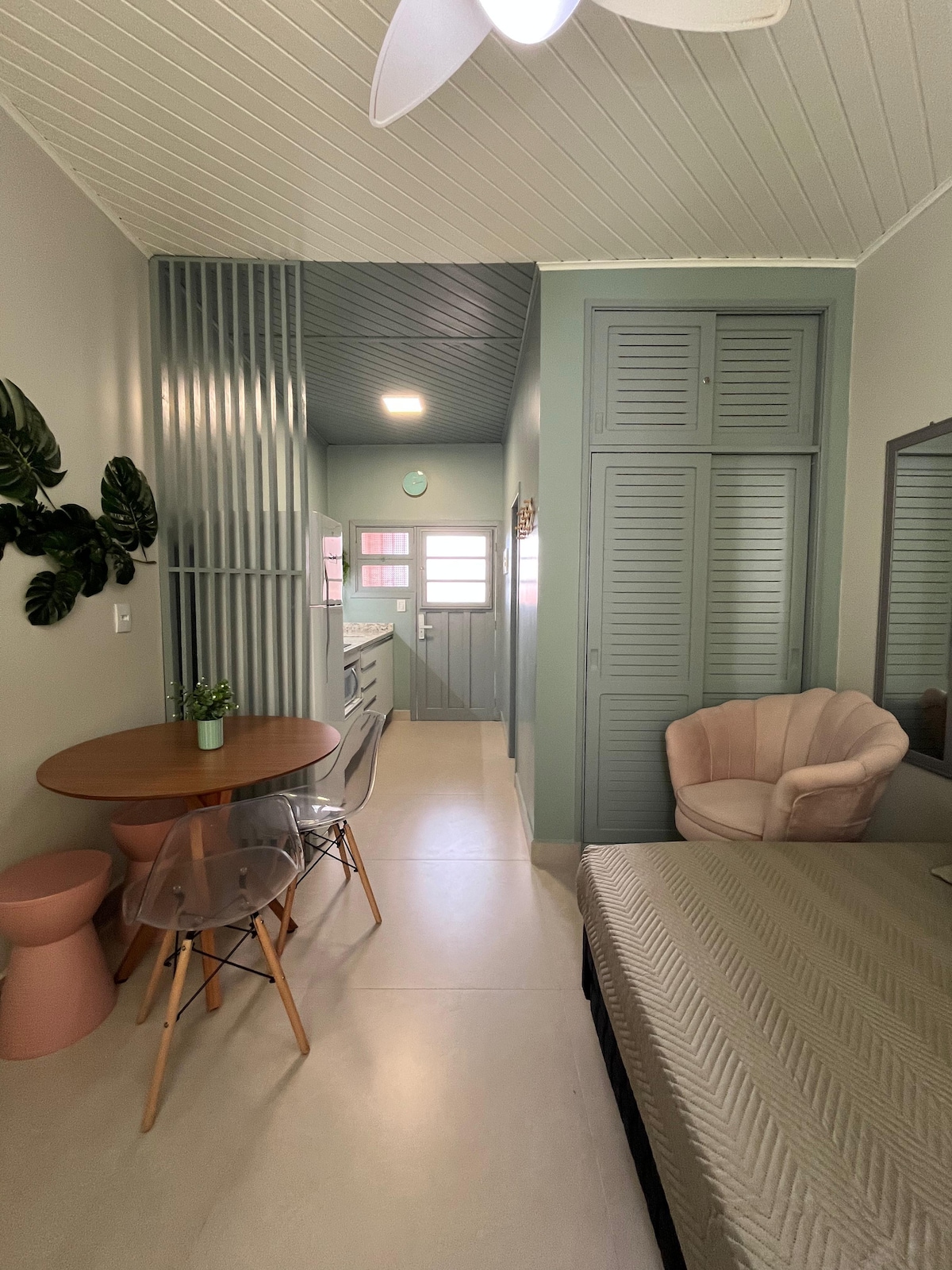Our little resting place in Capão Novo is a studio, also called a loft / single room, located in a building by the sea, on the second floor, with a side view of the sea. Ideal for couples. It has an individual enclosed garage.