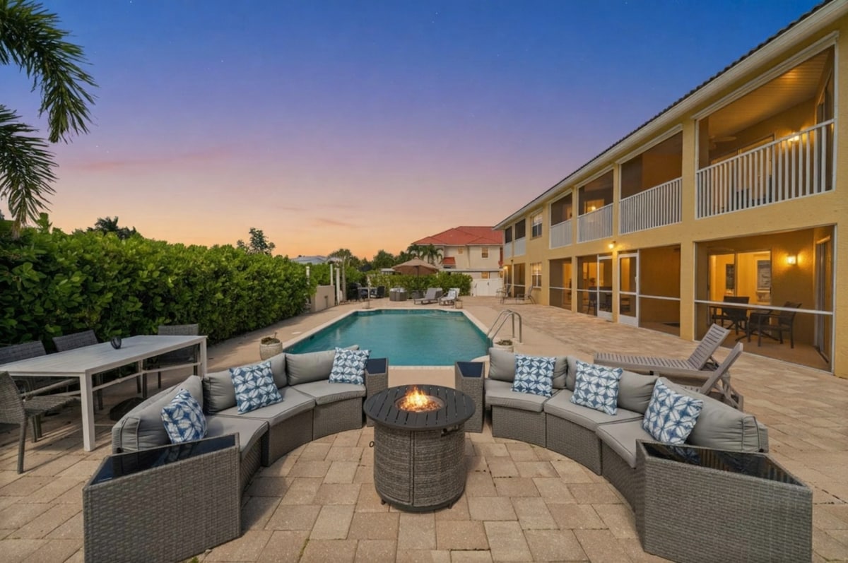 Luxurious 4BR 3.5Bath villa located in a prime location, directly on the Calosahachee River in a sought-after waterfront area near downtown. Magnificent expansive backyard with high-end amenities and direct river access ✔ 4 bedrooms ✔ Open Design Living ✔ Full Kitchen ✔ Patio (Pool and Hot tub, Bar, Dining, BBQ) ✔ Expansive Tropical Yard ✔ Indoor/Outdoor Surround Sound ✔ 7 Smart TVs ✔ High-Speed Wi-Fi ✔ Large Private pier/dock w/ boat & jet ski lift and a Tiki Hut! See more below!