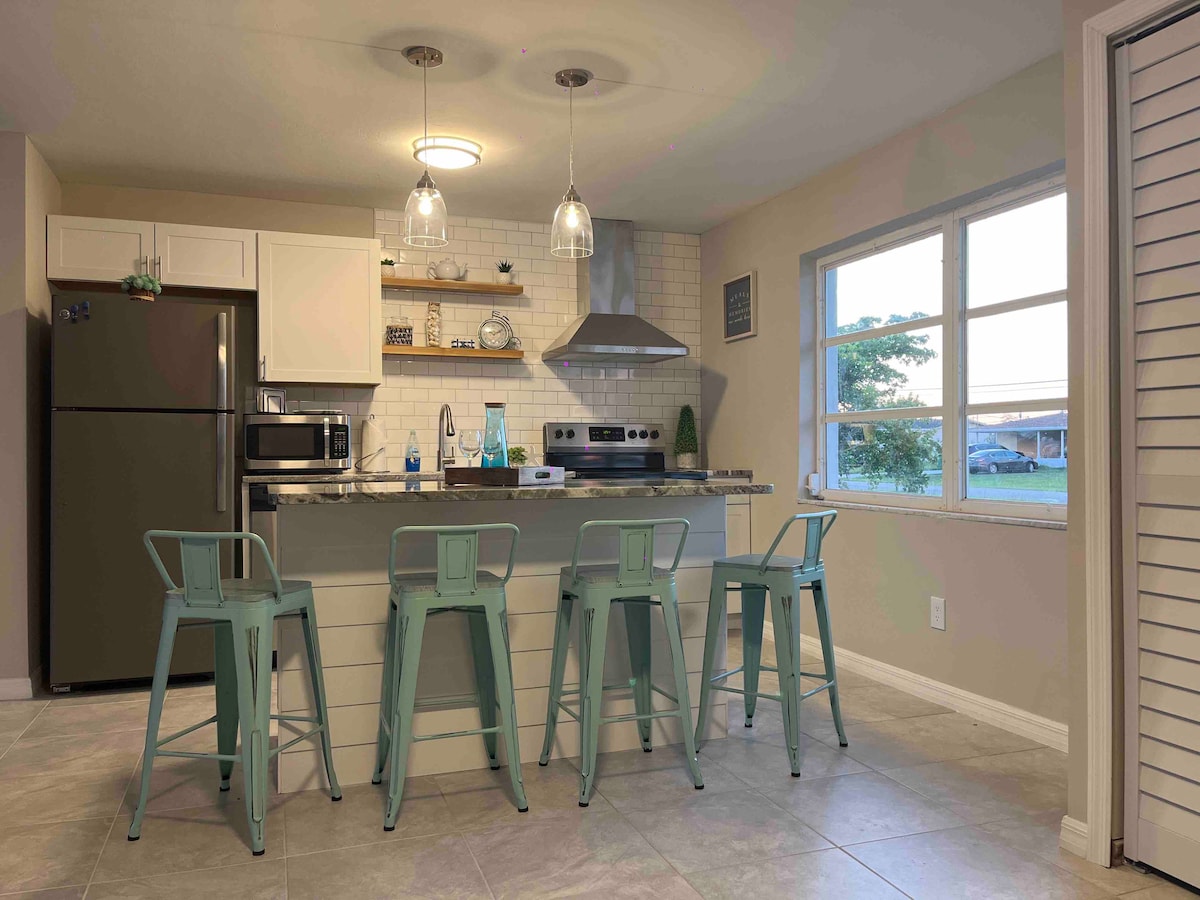 Your family will be close to everything when you stay at this centrally-located place. Stylish, yet comfortable - You have access to an additional spacious sun patio, a washer and dryer, and ample back and front yard. 10 miles to the beach, biking distance to Historic Downtown Fort Myers, this home is a renovated blast from the past. Terrazzo floors throughout kept the original Florida charm. The most peaceful neighborhood with walking distance to a restaurant with indoor/outdoor dining.